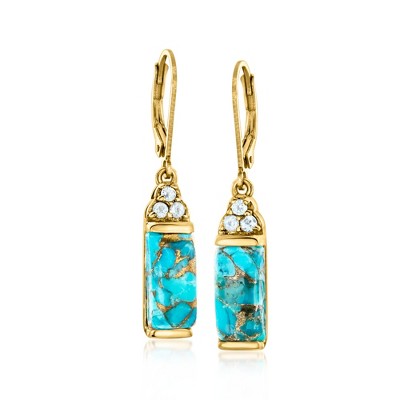 Ross-Simons Turquoise and .50 ct. t.w. Sky Blue Topaz Drop Earrings in 18kt Gold Over Sterling