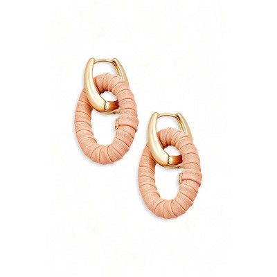 Slickblue Women's Oval Wrap Hoop Earrings, Faux Leather Detail, Drop Earrings, Vintage Chic, Pink, 2" Length