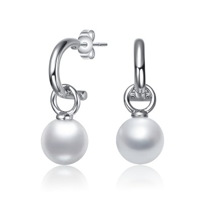 Guili White Gold Plated Huggie Drop Earrings with a Classic Round Pearl Accent for a Timeless and Elegant Look Perfect for Any Occasion