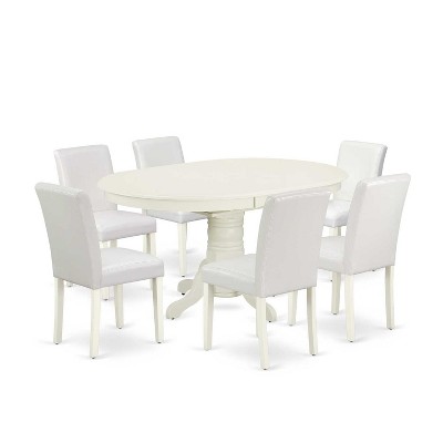 Dinette Set 7Pc Oval Table w/ Leaf & 6 Chairs - White PU Leather - Tuscan Style