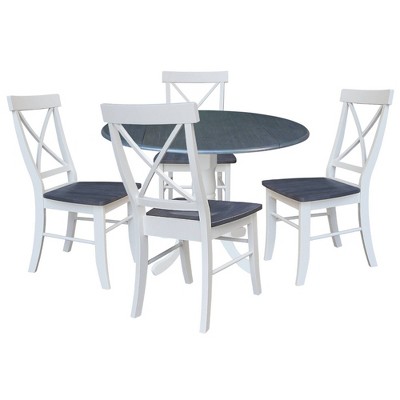 42" Lillith Dual Drop Leaf Dining Table with 2 X-Back Chairs White/Heather Gray - International Concepts