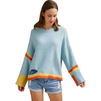 Allegra K Women's Pullover Drop Shoulder Elbow Patch Pullover Loose Sweater