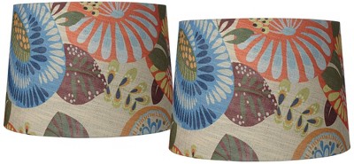 Springcrest Collection Set of 2 Drum Lamp Shades Multi Color Tropic Floral Medium 14" Top x 16" Bottom x 11" Slant Spider with Harp and Finial Fitting