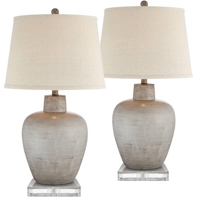 Regency Hill Designer Rustic Country Cottage Table Lamps Set of 2 with Square Risers 28 1/2" Tall Neutral Fabric Drum Shade for Bedroom Bedside