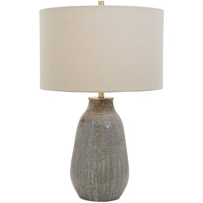 Uttermost Rustic Accent Table Lamp 22" High Rust Brown Glaze Taupe Ceramic Beige Linen Drum Shade Living Room Bedroom House Home