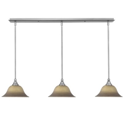 Progress Lighting Bravo Collection 3-Light Linear Chandelier, Ceramic, Brushed Nickel, Etched Umber Linen Glass