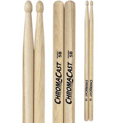 ChromaCast 5B USA Made Hickory Drumsticks Pair - Wood Tipped - Drum Sticks Tour Tested by Pro Drummers - Real American Hickory Wood