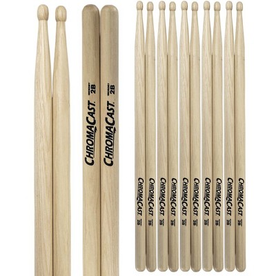 ChromaCast 5A & 5B USA Made Hickory Drumsticks 2 Pairs - Wood Tipped - Drum Sticks Tour Tested by Pro Drummers - Real American Hickory Wood