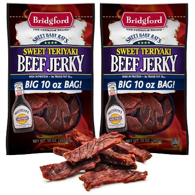 Bridgford Sweet Baby Ray’s Beef Jerky Sweet Teriyaki 10 oz - High Protein Beef Jerky Teriyaki for On the Go Snacking and Busy Lifestyles