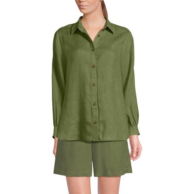 Lands' End Women's Linen Long Sleeve Feminine Shirt