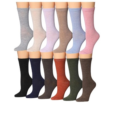Tipi Toe Women's 12 Lightweight Pairs Solid Heathered Colored Crew Socks