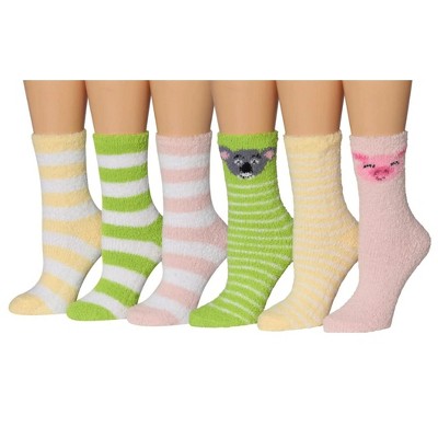 Tipi Toe Women's 6-Pairs Cozy Microfiber Anti-Skid Cute Jungle Stripes Patterned Soft Fuzzy Crew Socks