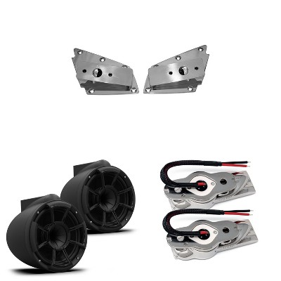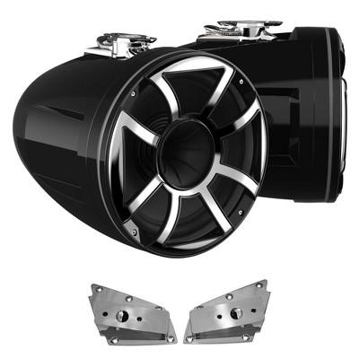 Wet Sounds REV 10 HD 10" Horn Loaded Compression Driver Tower Speakers with XW Grills & Stainless Swivel Base Mount, 300 Watts RMS, Black, Pair wit...
