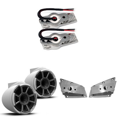 Wet Sounds REV 12 HD 12" Horn Loaded Compression Driver Tower Speakers with XW Grills & Stainless Swivel Base Mount, 400 Watts RMS, White, Pair wit...