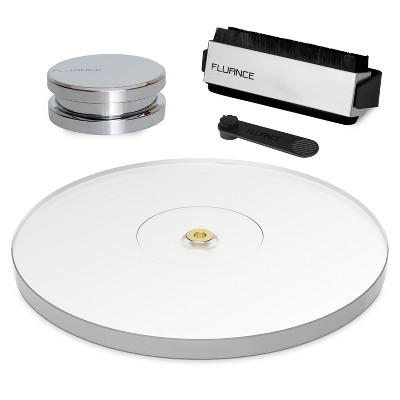 Fluance Vinyl Turntable Accessory Kit With Record And Stylus Anti-Static Brushes, Acrylic Platter and Record Weight - Silver