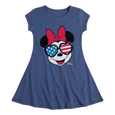 Girls' - Disney - Minnie Flag Glasses Fit & Flair Cap Sleeve Graphic Dress