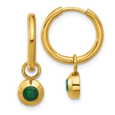 Chisel Stainless Steel Polished Yellow IP-plated with Removeable Green CZ Dangle Hinged Hoop Earrings