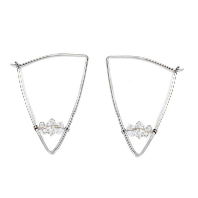 Bella Silver Sterling Silver, Diamond-Shaped CZ Hoop Earrings - Silver