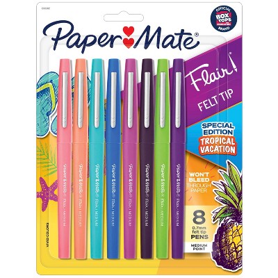 Paper Mate Flair 8pk Tropical Vacation Felt Pens 0.7mm Medium Tip Multicolored: Colorful Papermate Pens, Fade-Resistant