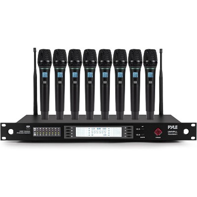 Pyle 8-Channel Wireless Microphone System PDWM8440 Handheld Dynamic Mics Black 8pc
