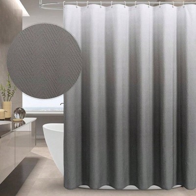 Ombre Shower Curtain 3D Embossed Textured Herringbone Fabric Modern Farmhouse Bathroom Decor Soft Cloth Set