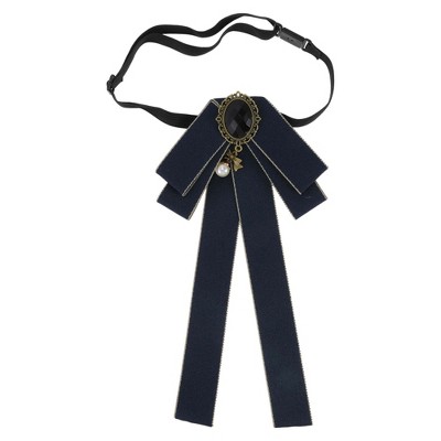 Unique Bargains Women Adjustable Vintage Pre-Tied Tie Brooch Pin Bowknot Rhinestone for Valentine's Day Party Wedding Navy Blue