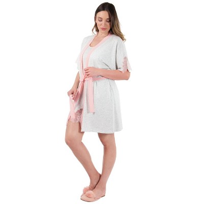 Memoi Women's Peach Pink Lace Trim Lightweight Cotton Blend Robe