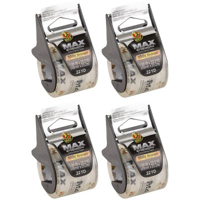 Duck Max Strength Clear Packing Tape, 3 Rolls With Dispensers, 1.88 Inch x 22 Yards Each