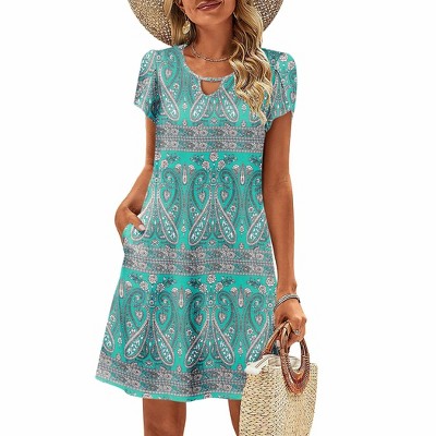 Zeagoo Women's Casual A-Line Dress with Pockets Summer Beach Floral Tshirt Dress Short Sleeve Mini Dress Flowy Sundresses