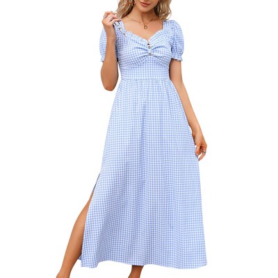 Allegra K Women's Summer Floral Puff Sleeve Square Neck Midi Smocked Dresses