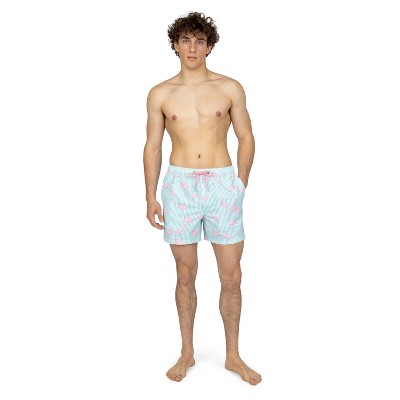Party Pants Men's Pink Fellows Swim Shorts - Pink and Blue Seersucker