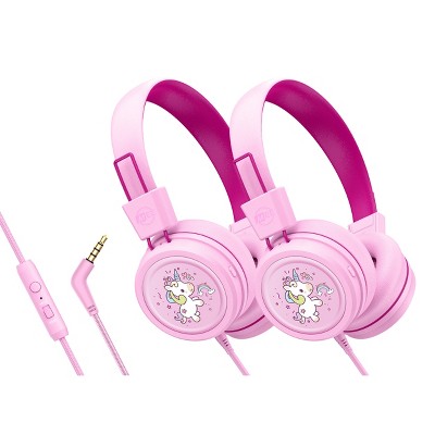 MEE audio KidJamz KJ55AUX (2 Pack) 3.5mm Safe Listening Kid's Headphones with Headset & Color Graphics