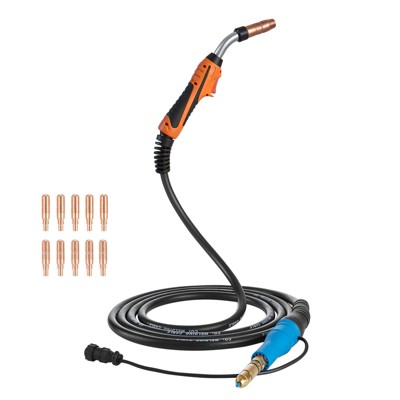 VEVOR 150A MIG Welding Gun with 15FT Cable, Replacement for Miller M-15/M-150 (249041) - with 5PCS Mig Welding Contact Tips, Black+Orange