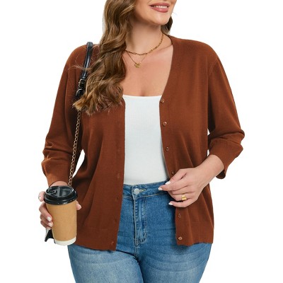 Women's Plus Size Cardigan Open Front Oversized Button Lightweight Sweaters V Neck Loose 3/4 Sleeve Cardigans Knit Outwear
