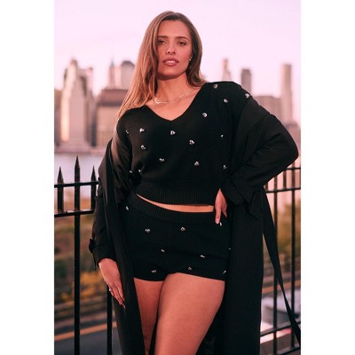 ELOQUII Heart Stud Sweater Hot Short