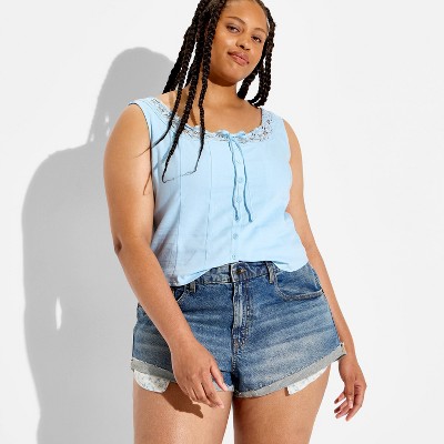 Women's Button-Front Lace Trim Tank Top - Wild Fable™