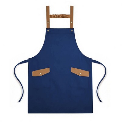 Alilang Canvas Kitchen Apron with Adjustable Shoulder Straps Multi Pocket Work Apron for Cooking Cleaning