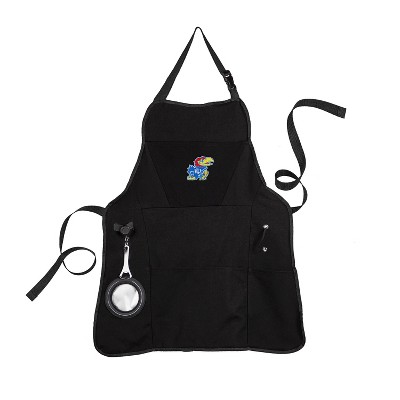 Evergreen University of Kansas Black Grill Apron- 26 x 30 Inches Durable Cotton with Tool Pockets and Beverage Holder