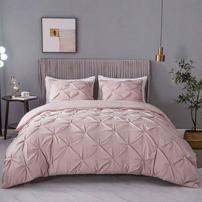 3 Piece Pink Queen Duvet Cover, Luxurious Pinch Pleated, 100 Microfiber, King Size, Zipper Corner Ties