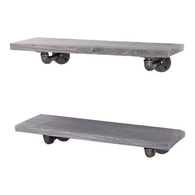 Pipe Decor 24” Riverstone Grey Live Edge Wood Shelf with L-Shaped Pipe Brackets (2-Pack)