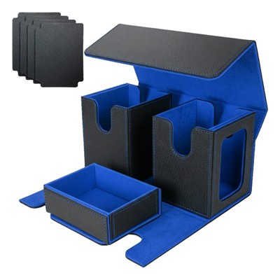 Itopfox MTG Commander Deck Box Set Holds 220 Double Sleeved Cards 3 in 1 Case With 2 Deck Boxes Dice Box Mat Black Blue 1 Set