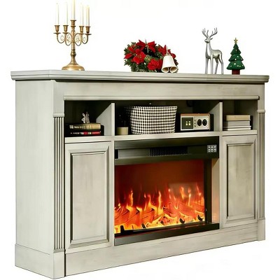Farmhouse Electric Fireplace TV Stand, 68 Inch Media Console for TVs Up to 75" with Remote, Open Storage Shelves Without a fireplace