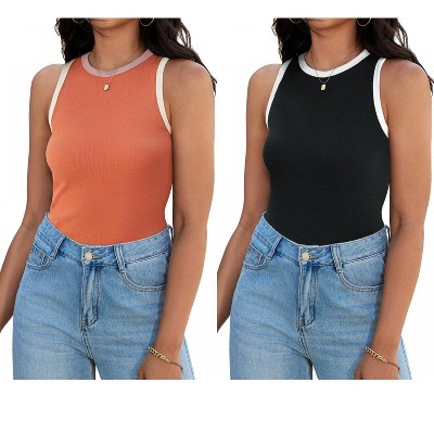 INSPIRE CHIC Women's Color Block Summer Crew Neck Ribbed Sleeveless Crop Going Out Tank Tops