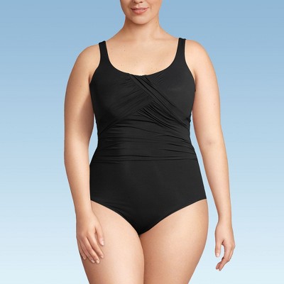 Lands' End Women's Plus Size DD-Cup Slender Grecian Tummy Control Chlorine Resistant One Piece Swimsuit