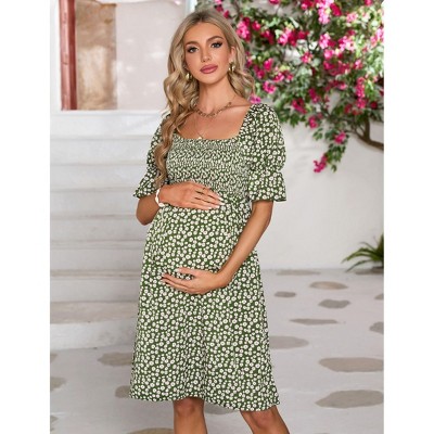 Coolmee Women's Maternity Dress Floral Square Neck A Line Fashion Dress Short Sleeves Maternity Dress for Photography