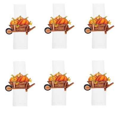 Gallerie II Pumpkin Wheelbarrow Set of 6 Metal Cloth Napkin Rings