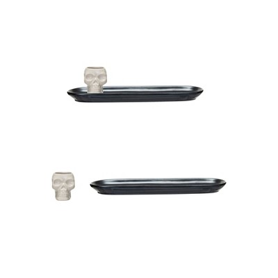 Storied Home Stoneware Platter Dish with Speckled Skull Shaped Bowl, Black and White