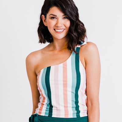 Calypsa Women's Plus Size One Shoulder Layla Crop Swim Top WIth Built In Bra