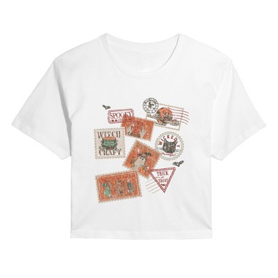 Women's - Instant Message - Halloween Stamps Cropped Graphic T-Shirt