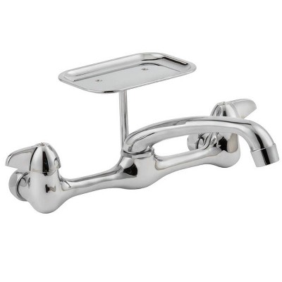 WOWOW Double Handle Wall Mount Standard Kitchen Faucet with 18 in. Swivel Jointed Spout and Double Joint Swing Arms in Chrome